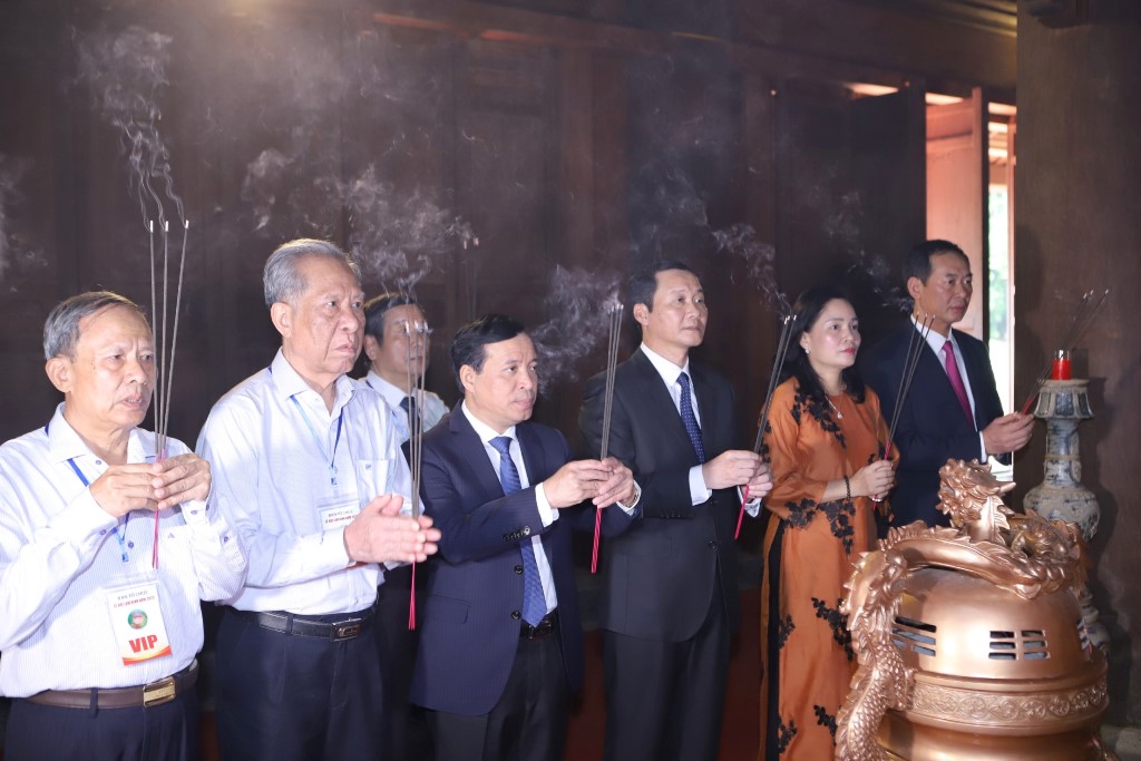 Các đồng chí lãnh đạo dâng hương tưởng nhớ công đức vua Lê Thái Tổ.