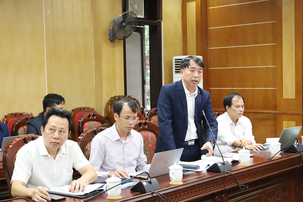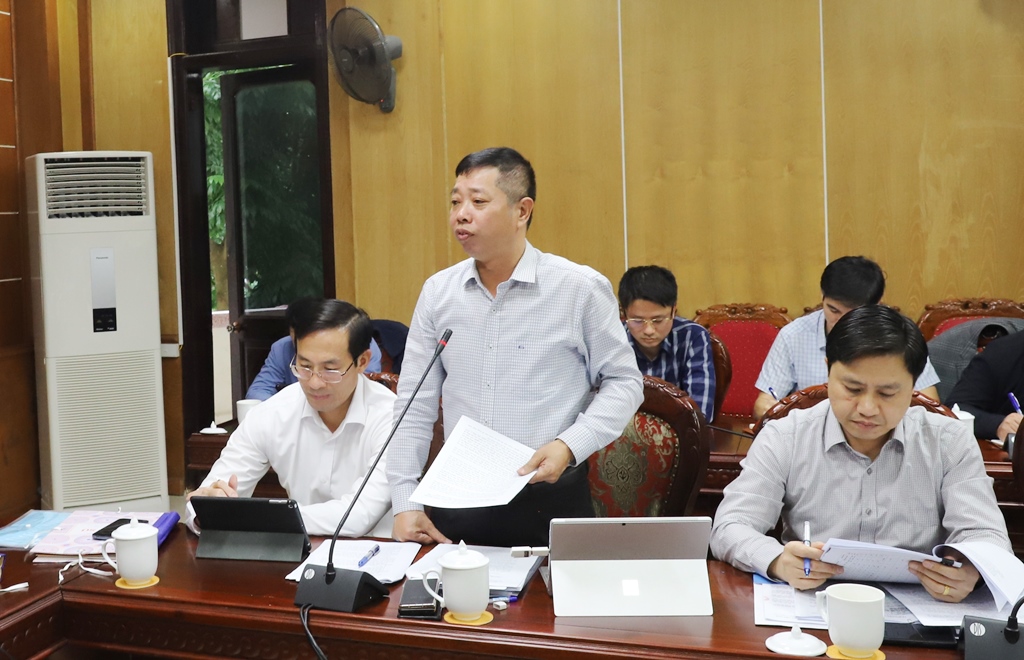 | Đại diện lãnh đạo sở, ngành phát biểu tham gia ý kiến tại hội nghị. |