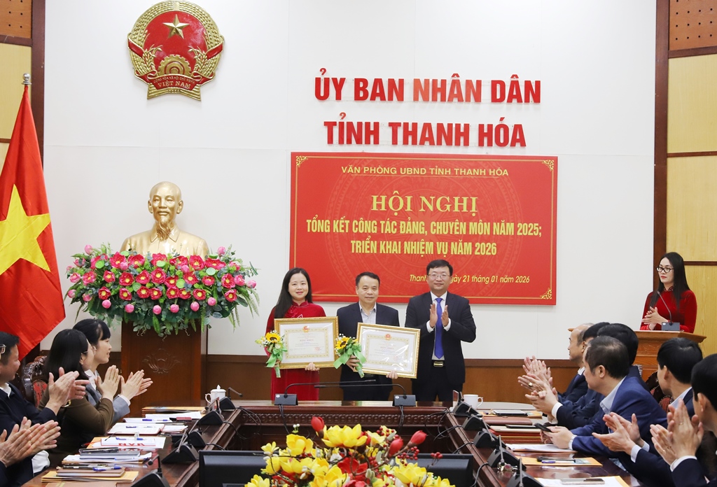 Chiều ngày 21/1/2026, Văn phòng UBND tỉnh đã tổng kết công tác năm 2025, triển khai nhiệm vụ năm 2026. Các đồng chí: Nguyễn Thế Anh, Tỉnh ủy viên, Chánh Văn phòng UBND tỉnh; Lê Việt Hiếu, Phó Chánh Văn phòng UBND tỉnh đồng chủ trì hội nghị.