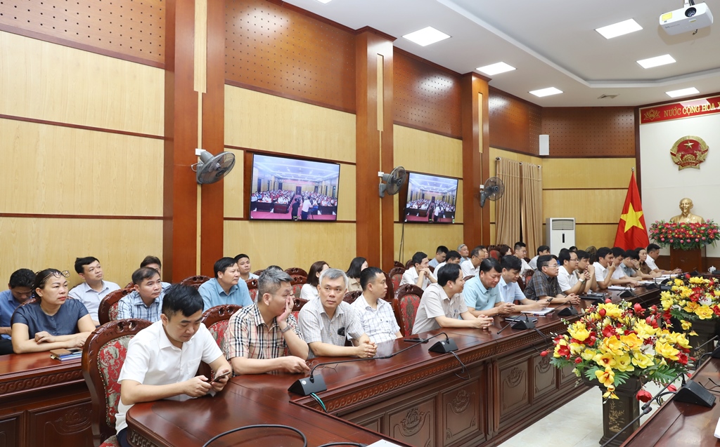 | Toàn cảnh hội nghị tại điểm cầu Văn phòng UBND tỉnh. |